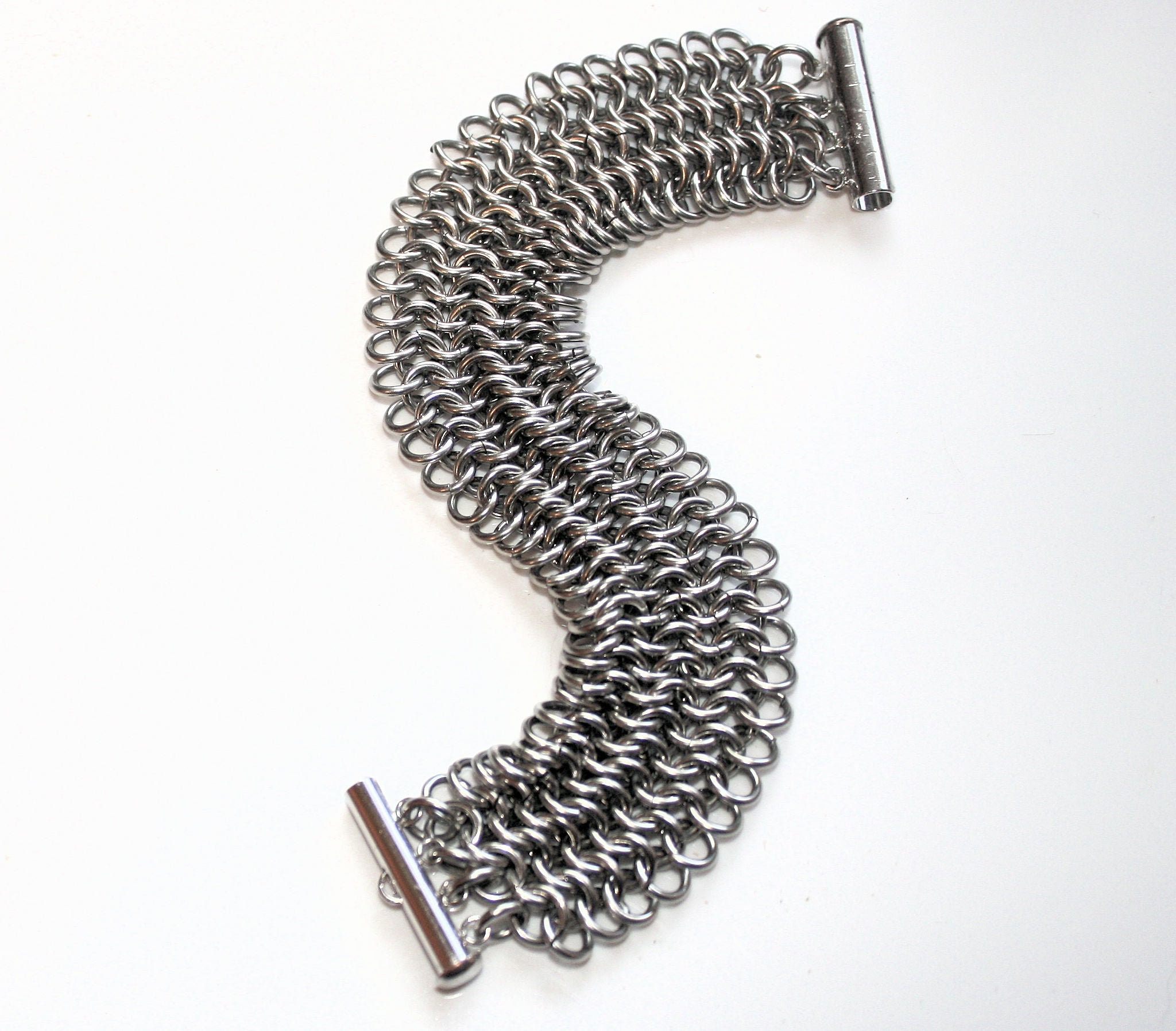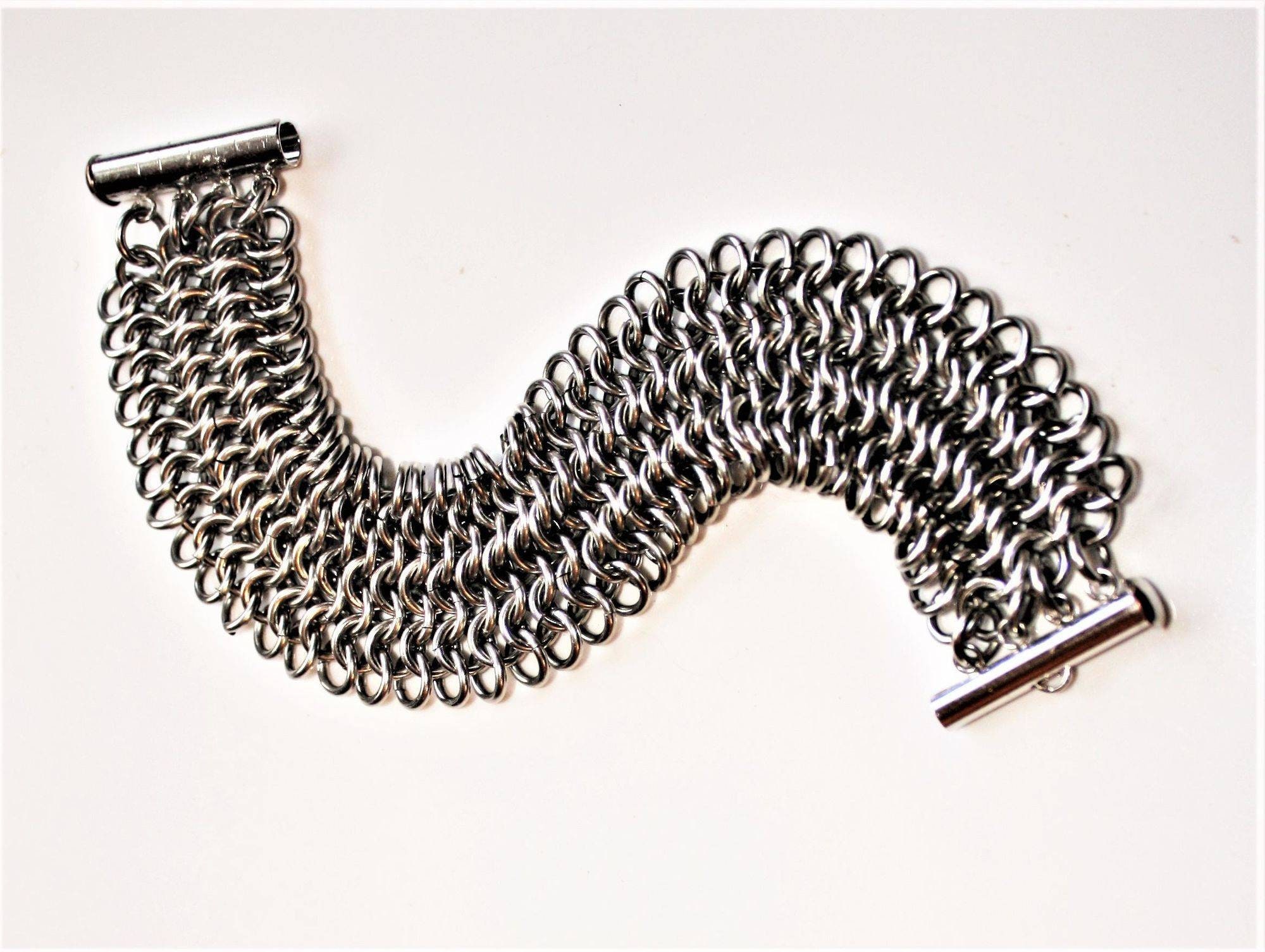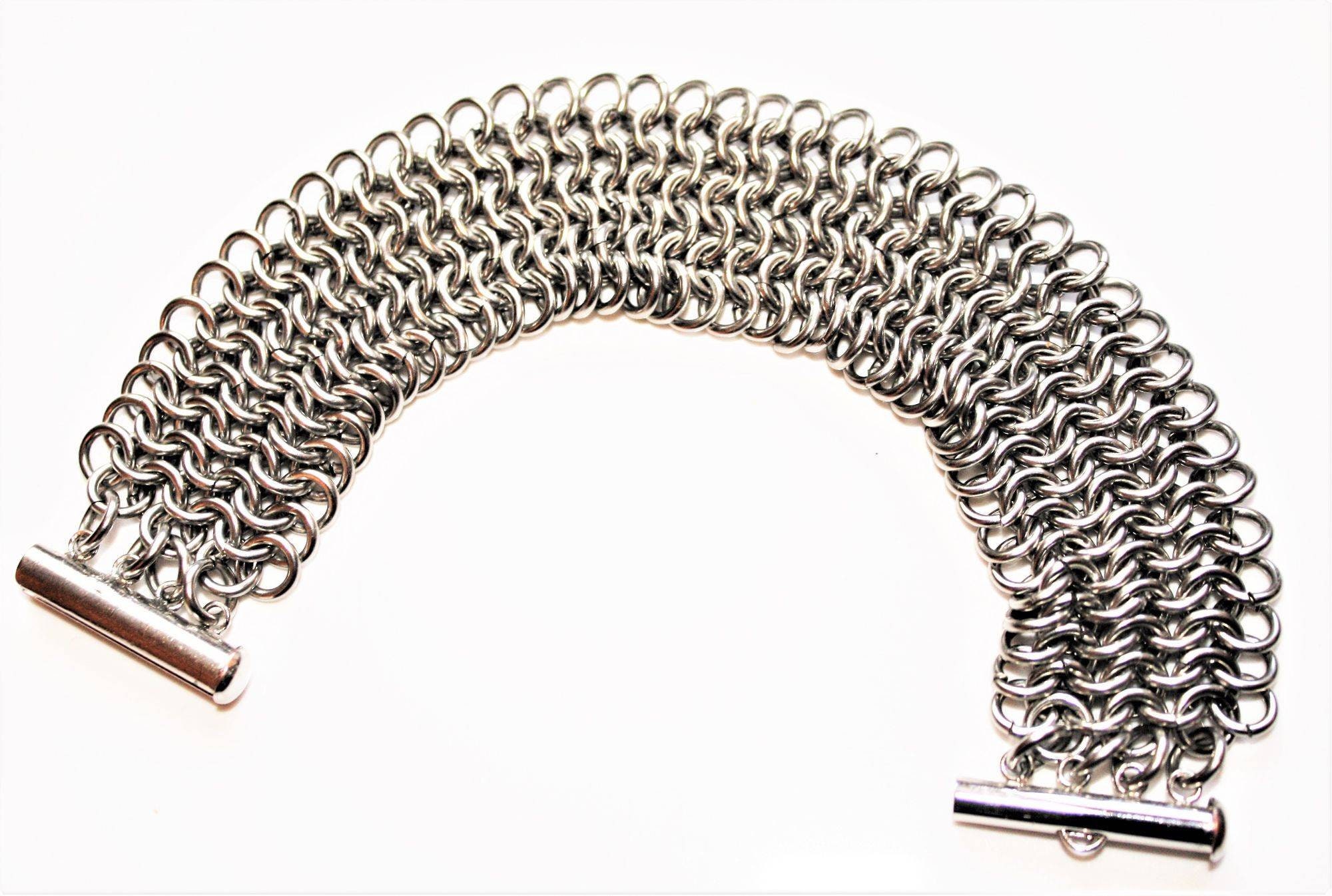 Our sparkling four-row Classic Chain Stainless Steel European 4-in-1 Chain Maille Bracelet looks and feels beautiful! Stainless steel is a strong, durable, tarnish-free metal with a unique color and brilliance and a touch of boldness both in its stylish look and heft. And stainless steel always looks fabulous with very little upkeep. A simple soap and water clean-up is all that's required to remove debris and keep it lustrous.