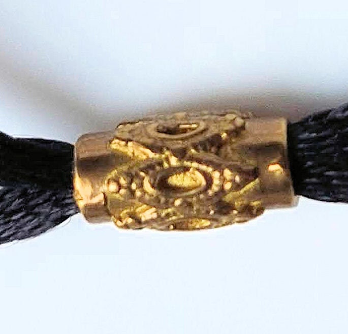 Wear this versatile and simply elegant 1-1/2" long x 1-1/4" wide brass chain maille pendant strung onto a 20-1/2" long black silk cord with everything from jeans and a tee to your little black dress. Multiple options for length from 14" to 21" with an embossed brass slider closure.