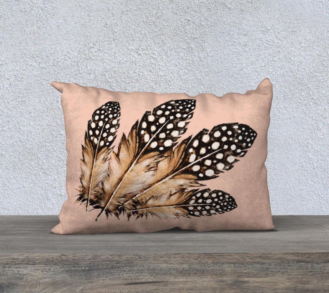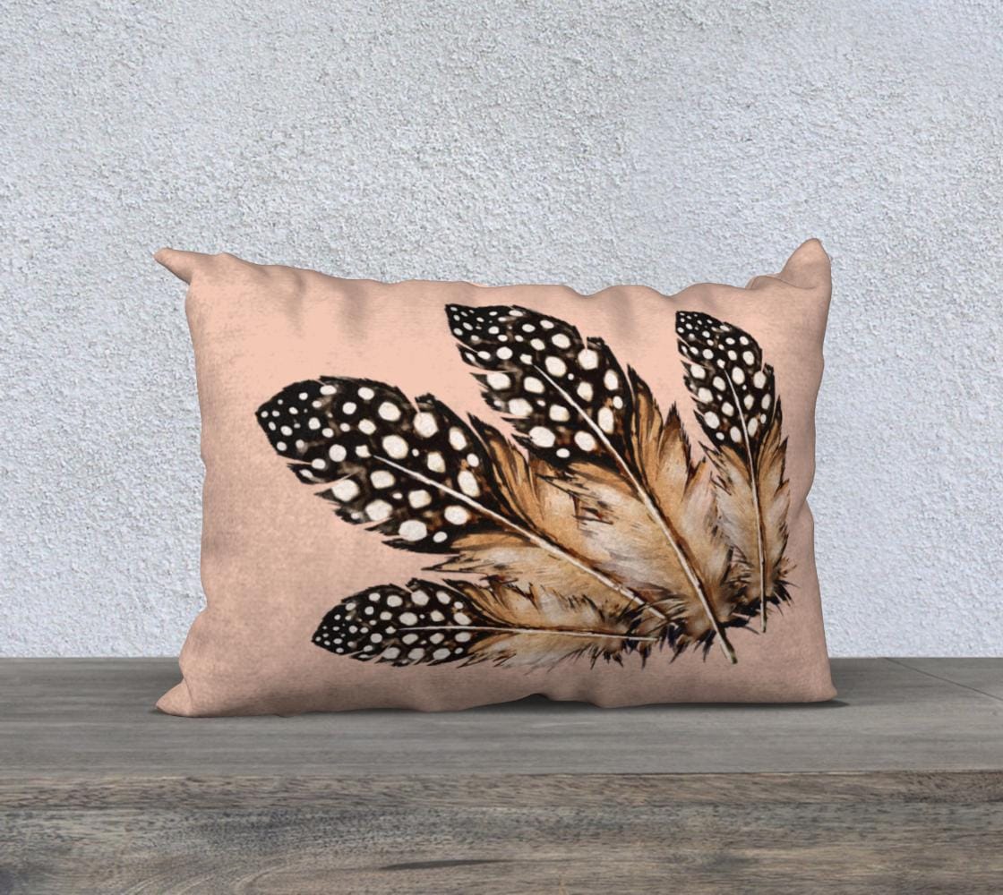 Four Spotted Feathers on Antique Coral Velveteen Decorative Pillow Cover - 20" x 14"