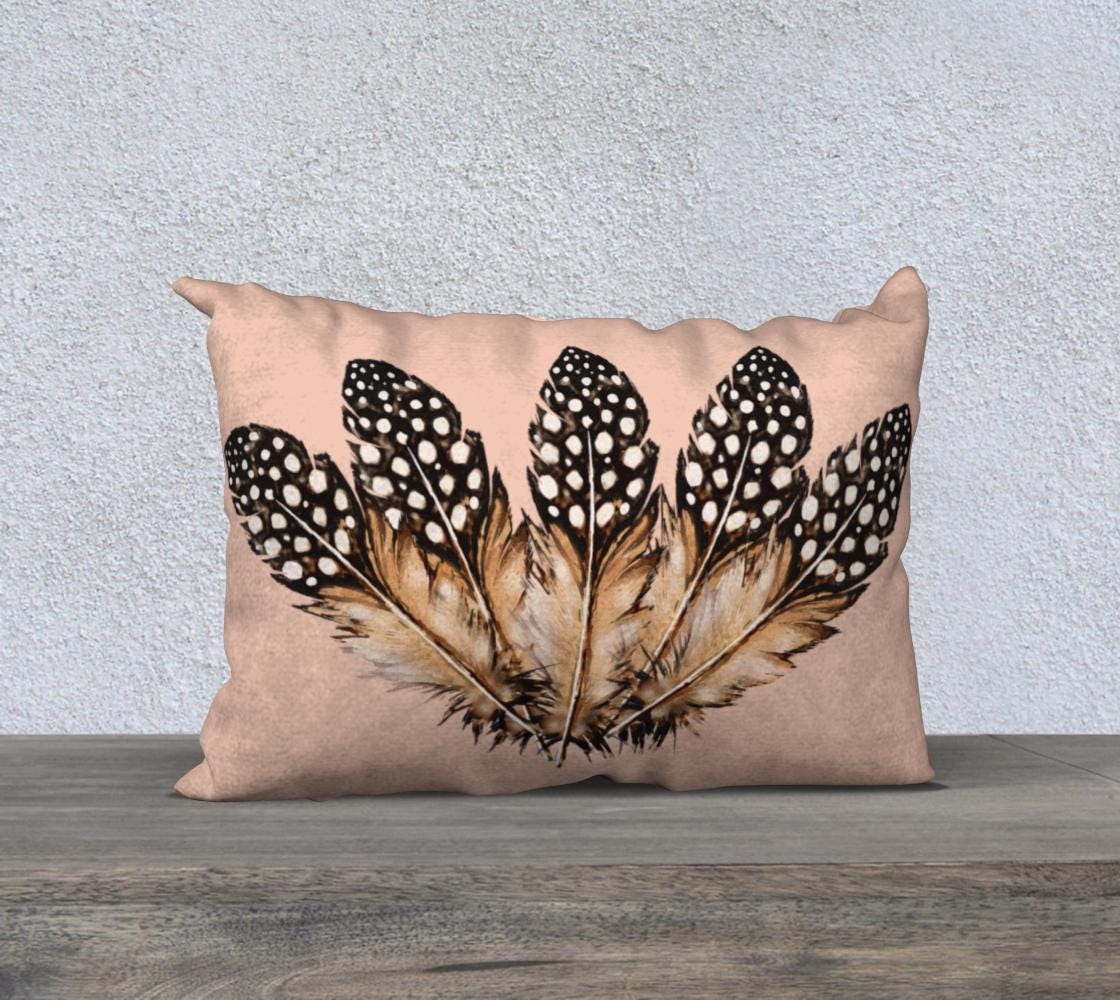 Five Spotted Feathers on Antique Coral Velveteen 20" x 14" Pillow Cover